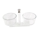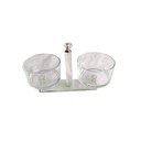 ستاند تقديم زجاجي مزدوج يحتوي على وعائين، يتميز بتصميم عصري وأنيق. يحتوي كل وعاء على قطر 8 سم وارتفاع 12 سم، مما يجعله مثاليًا لتقديم الحلويات أو الوجبات الخفيفة. مصنوع من الزجاج عالي الجودة لضمان المتانة والجمال. الأبعاد: القطر 8 سم × الارتفاع 12 سم لكل وعاء الوزن: 0.540 كجم