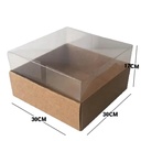 بوكس كرتون مع غطاء شفاف، مثالي لتخزين الأغراض أو تقديم الهدايا. تصميمه الشفاف يتيح لك رؤية المحتويات بوضوح. الأبعاد: الطول 30 سم، العرض 30 سم، الارتفاع 17 سم، الوزن 0.260 كجم